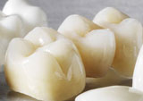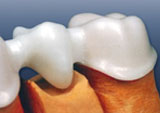 Revêtement esthétique complet : Les chapes qui servent à la fabrication individualisée de vos couronnes et bridges sont "blanches comme neige", elle se prêteront extraordinairement à un revêtement artistique sans aucune transparence.